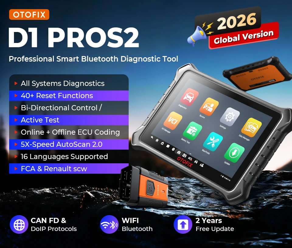1.OTOFIX D1 PROS2, the 2026 car scanner OTOFIX D1 PROS comes with top-level hardware, 🎁2 Years Free Updating, 💡40+ hot Services, 💡ECU Coding, 💡Full System Diagnostics, 💡Bidirectional control, 💡DoIP & CAN FD protocols, 💡FCA AutoAuth, 💡No IP restrictions, 💡cloud services…and becomes the excellent choice for small & mid-sized repair shops.