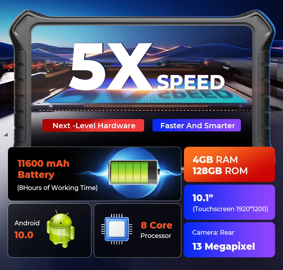 Bigger 4GB+128GB Memory: Extended memory capacity (from 64GB to 128GB) allows you to save all diagnostic reports and resources without caring for narrow storage.