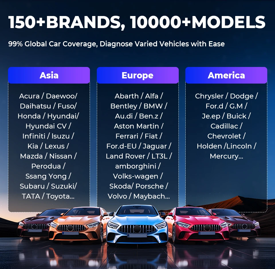 No need to worry about compatibility issues. The device currently supports 80+ car manufacturers and 140+ car brands worldwide. Also, you will be able to get more new car models through subsequent high-frequency software updates.