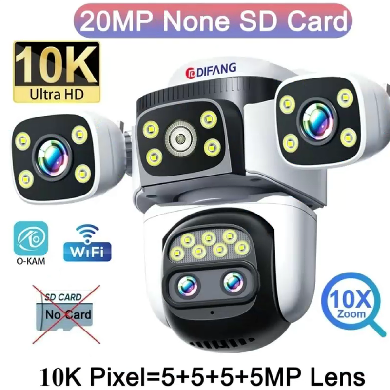 Outdoor 10K WiFi6 Camera 20MP 10X Optics Zoom Three Screen Four Lenses PTZ Automatic Tracking 6K Dual Lens Waterproof Security CCTV