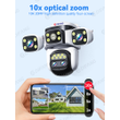 Outdoor 10K WiFi6 Camera 20MP 10X Optics Zoom Three Screen Four Lenses PTZ Automatic Tracking 6K Dual Lens Waterproof Security CCTV