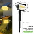 【3 Brightness Lighting Modes】: 72 LEDs solar landscape spotlights, 3 Considerate brightness modes: you have the option to set from High Mode (MAX 6Hrs) to Medium Mode (MAX 10Hrs) or Low Mode (MAX 20Hrs) to extend working time.When the brightness is low enough to require illumination, it automatically switches from energy storage mode to a lighting mode that does not require motion detection (auto on at night/auto off at sunrise).