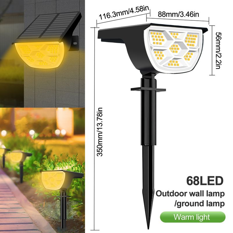 Outdoor 72/68 LED Solar Landscape Spotlights IP65 Waterproof Solar Light with 3 Modes Solar Garden Lighting for Outside Yard