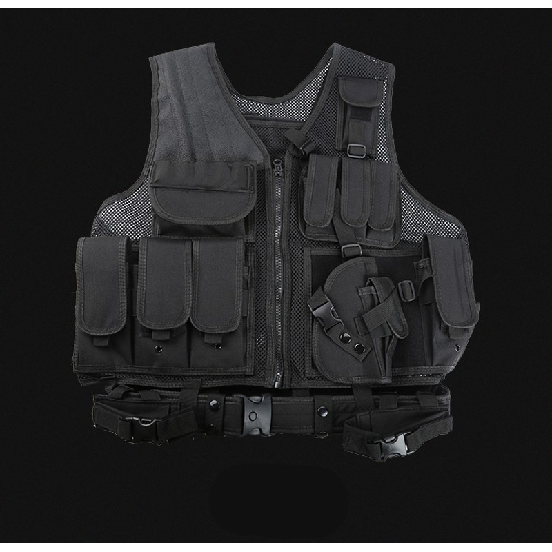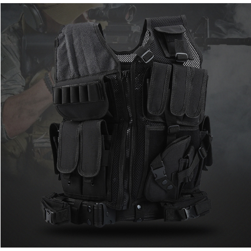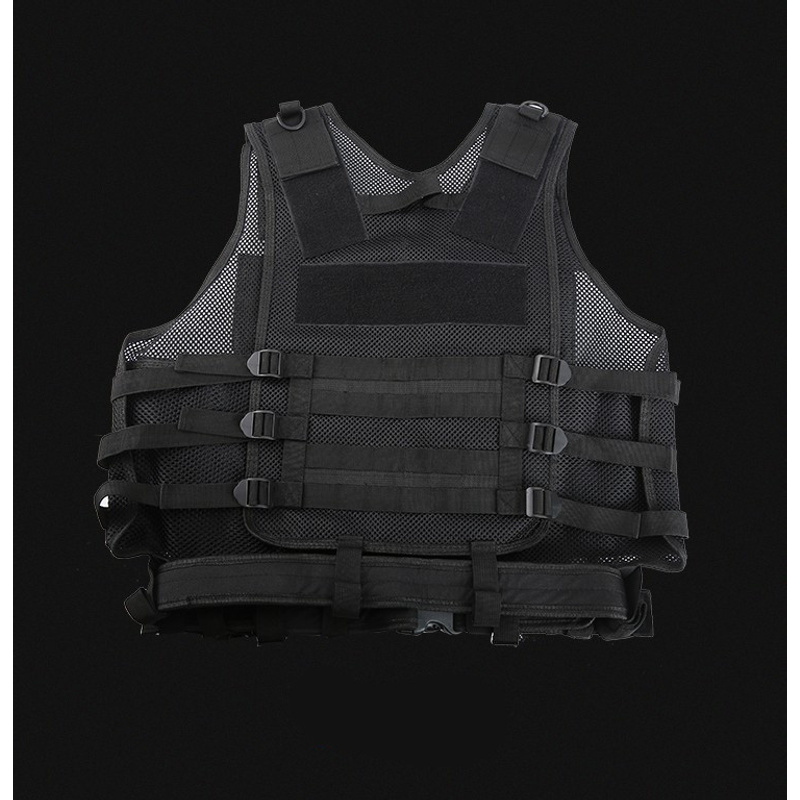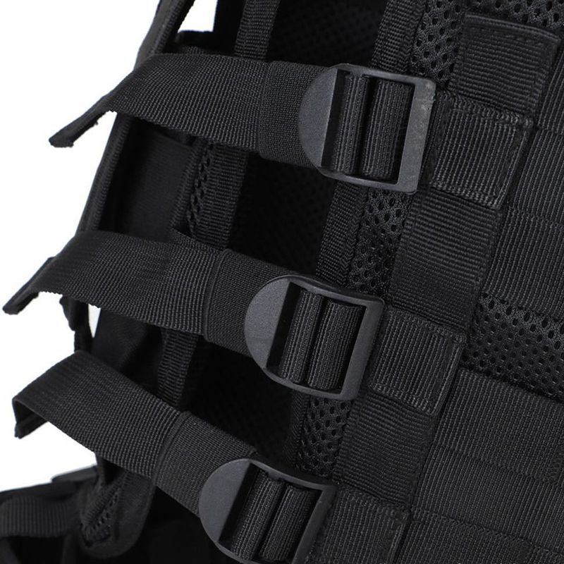 Shoulder and waist side part adopt magic tape and buckle design which enables you to wear and take off this tactical vest rapidly and conveniently.