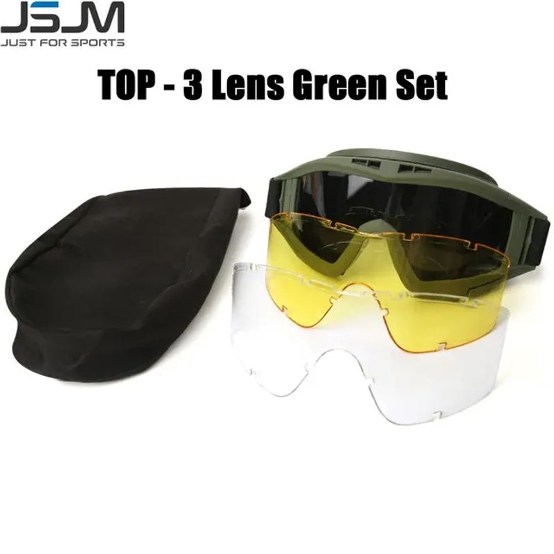 Outdoor Airsoft Tactical Goggles 3 Lenses Wind and Dust Resistant Shooting Motocross Mountaineering Glasses CS Safety Protection
