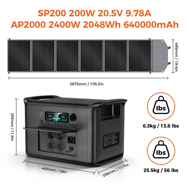 Outdoor Camping 2400W Fast Charging Portable Power Station 200W Foldable Portable Solar Panel For Home Energy Storage