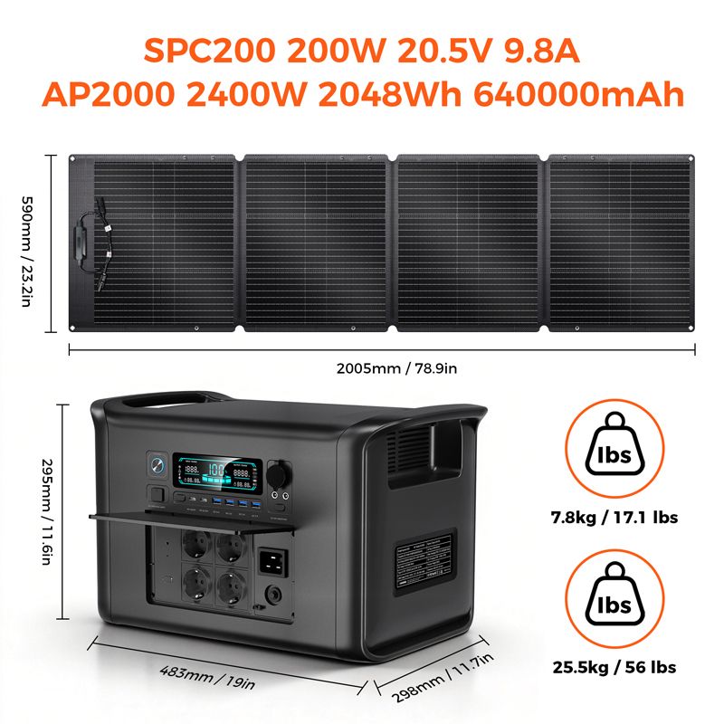 Outdoor Camping 2400W Fast Charging Portable Power Station 200W SPC200 Foldable Portable Solar Panel For Home Energy Storage