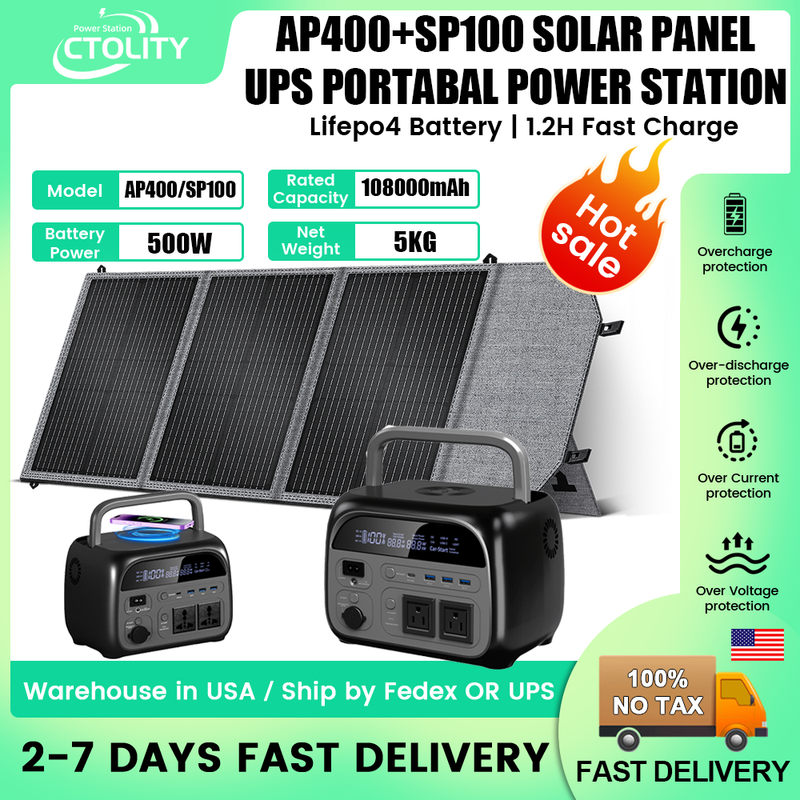 Outdoor Camping 500W Fast Charging Portable Power Station 100W USB Type C Foldable Portable Solar Panel For Home Energy Storage
