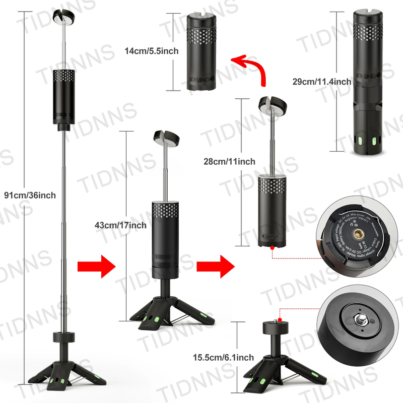 ✅🌟The telescoping tripod stand offers a height adjustment range of 43 to 90cm, enabling you to customize the light's position according to your preference.The lamp body and telescopic bracket can be disassembled and separated, so you can get a flashlight that is only 14 centimeters long. It can be put into your clothes pocket, which is very convenient to carry and can meet your various illumination needs.✅🌟