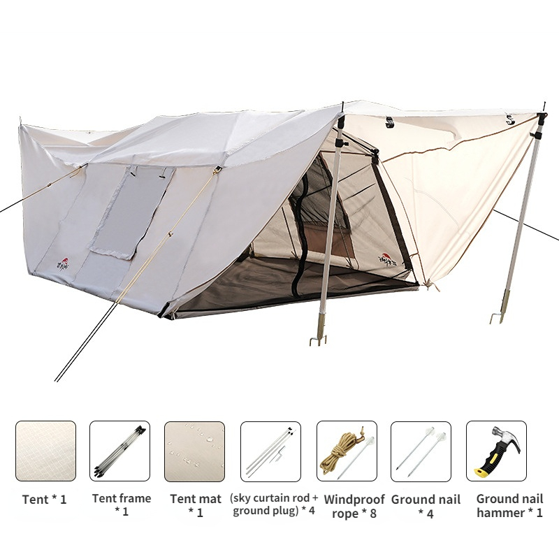 Outdoor Camping Off-site Two-person Tunnel Folding Tent Beige Set4
