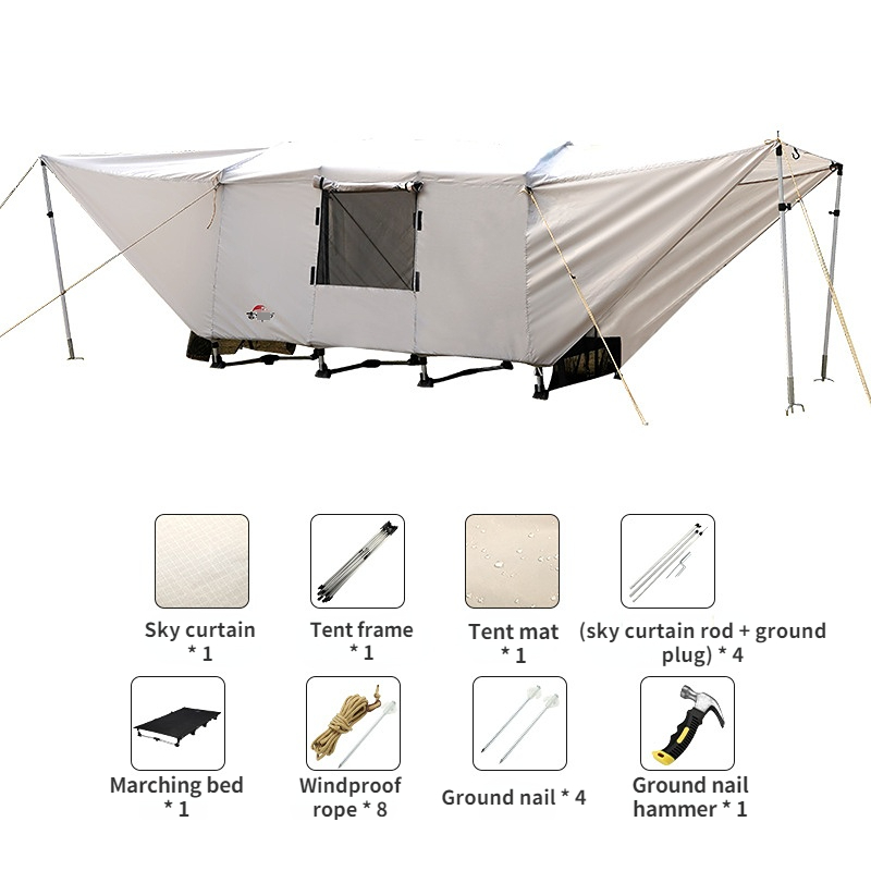 Outdoor Camping Off-site Two-person Tunnel Folding Tent Beige Set5