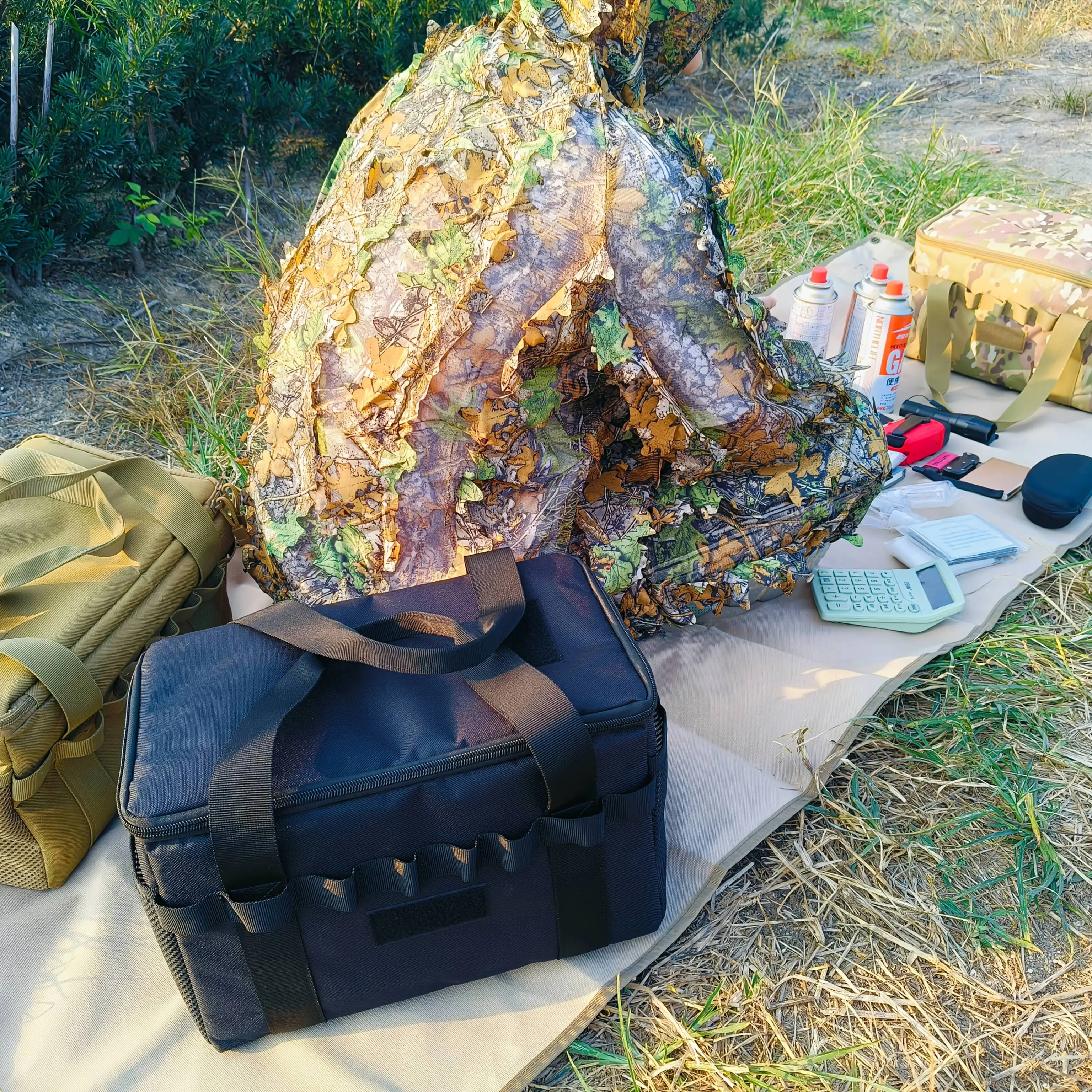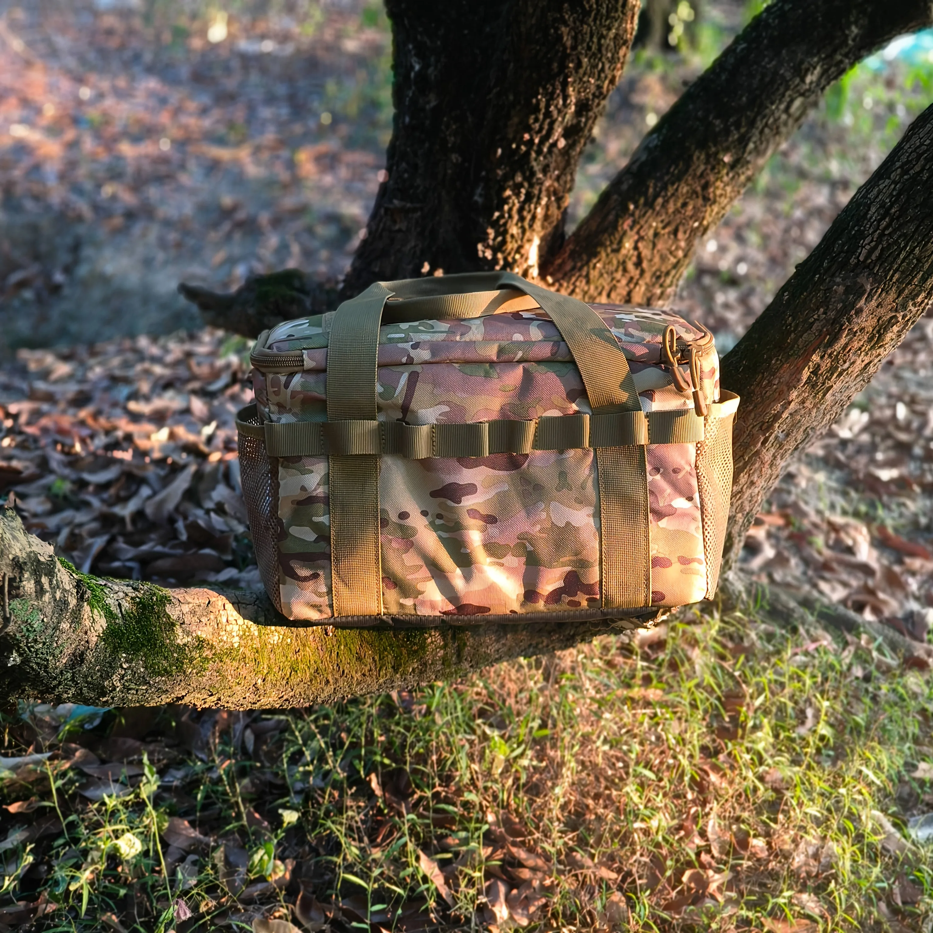 The bottom of our camping storage bag is made of waterproof material to isolate moisture and make the bag easy to clean. When the bag is installed, you can carry it with the two handles on the top. There are two areas to add the patches you like and there are many molle panels to add small items like tactical flashlight, tactical knife, no more worries about searching for your small items from the main pocket.