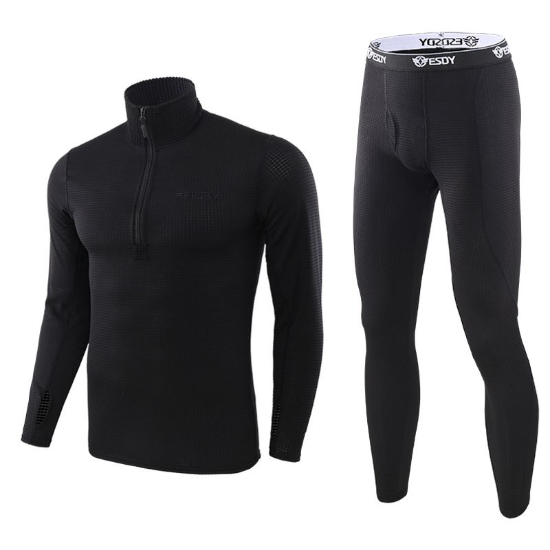 Outdoor Fleece Thermal Underwear Sports Fitness Clothing Black M