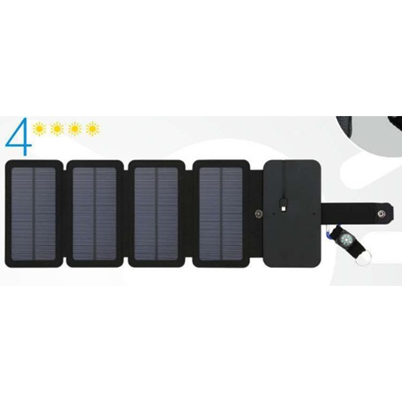 Solar power: 4 fold = 7.2W. 5 fold = 9W