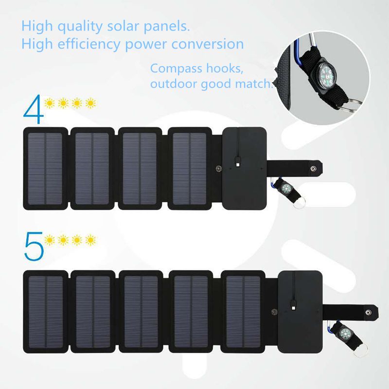 Solar power: 4 fold = 7.2W. 5 fold = 9W