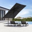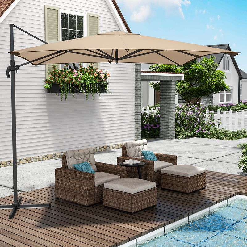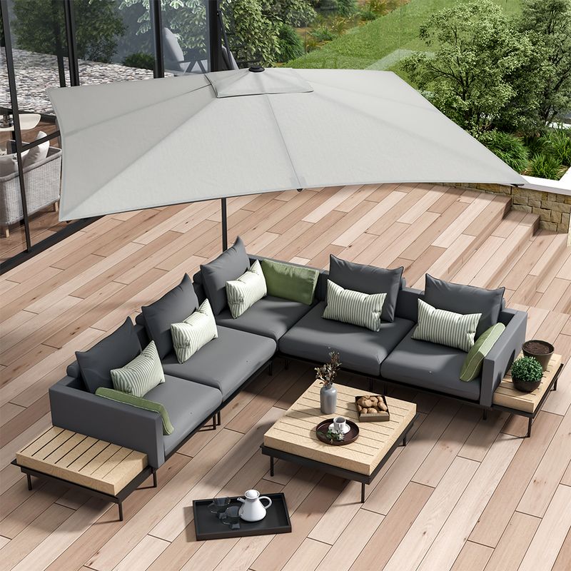This beautifully crafted cantilever parasol has an integrated tilt system, allowing the canopy to tilt both horizontally, and vertically. The canopy is 360-degree rotatable, allowing you to achieve the perfect amount of shade.