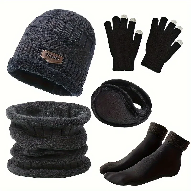 Outdoor leisure set Men's winter hat outdoor winter scarf, gloves, neckline, one plus cashmere insulated knit hat and socks