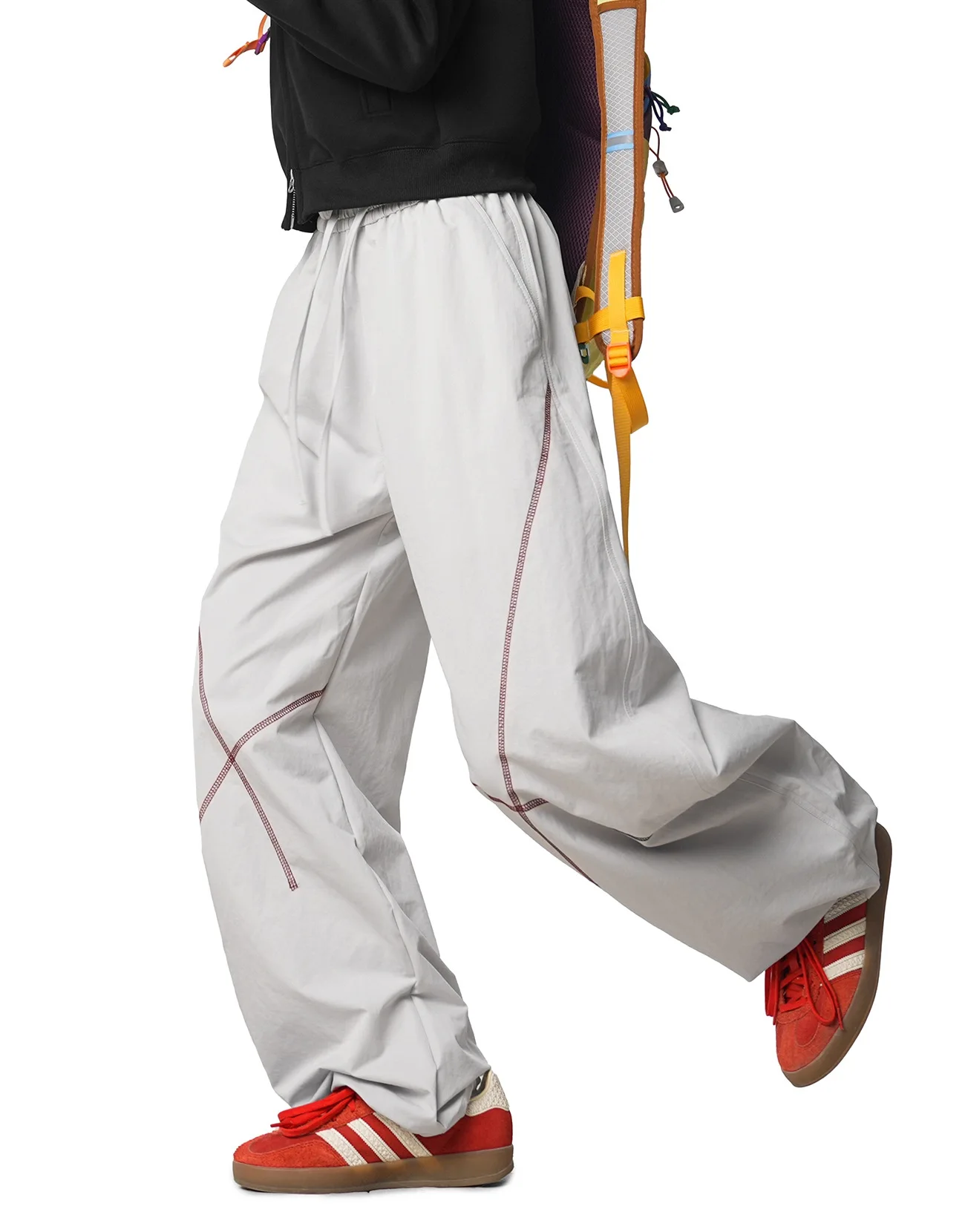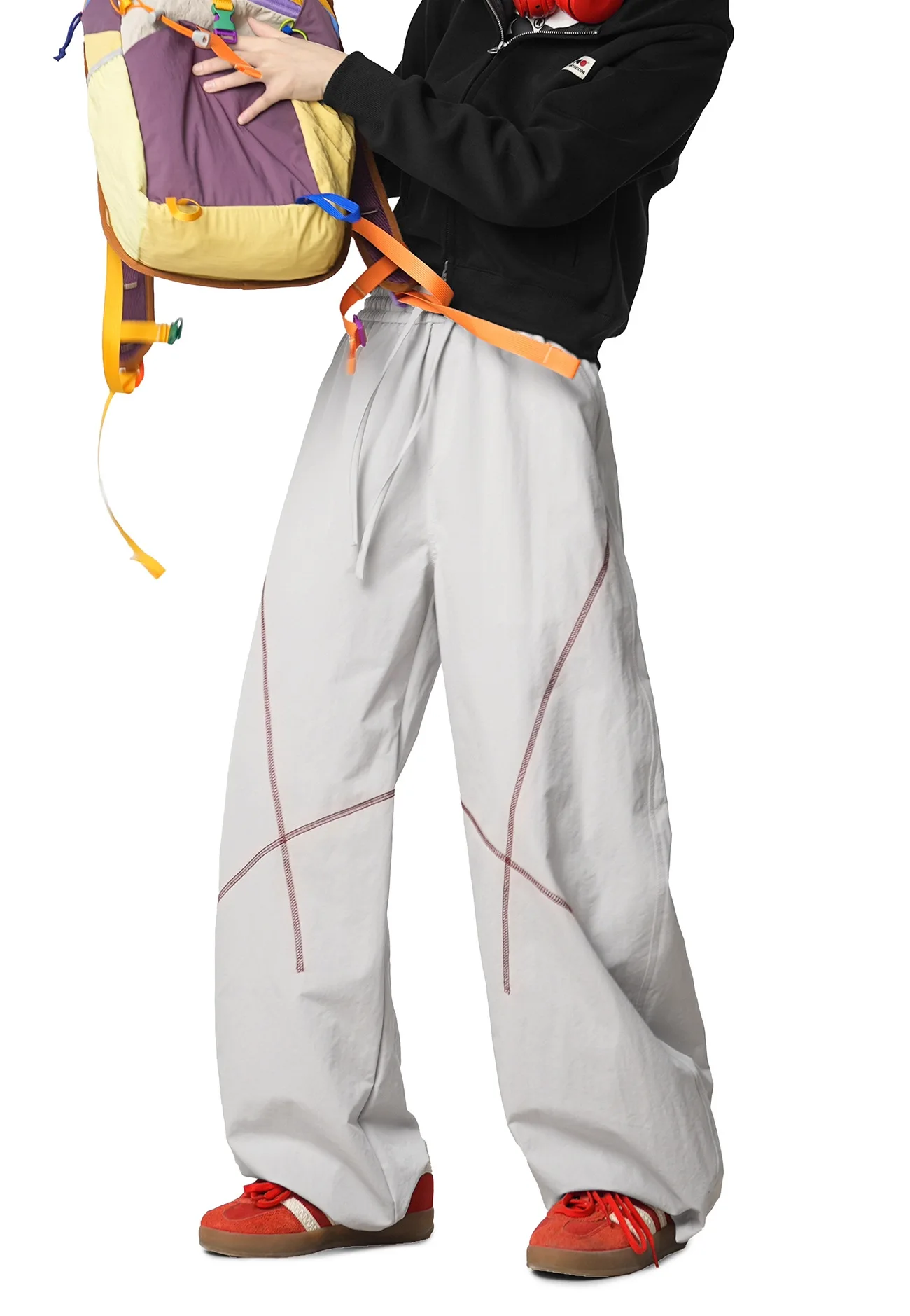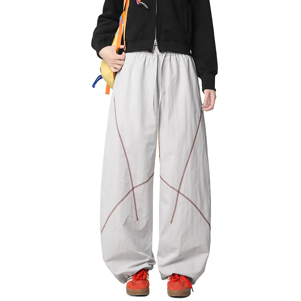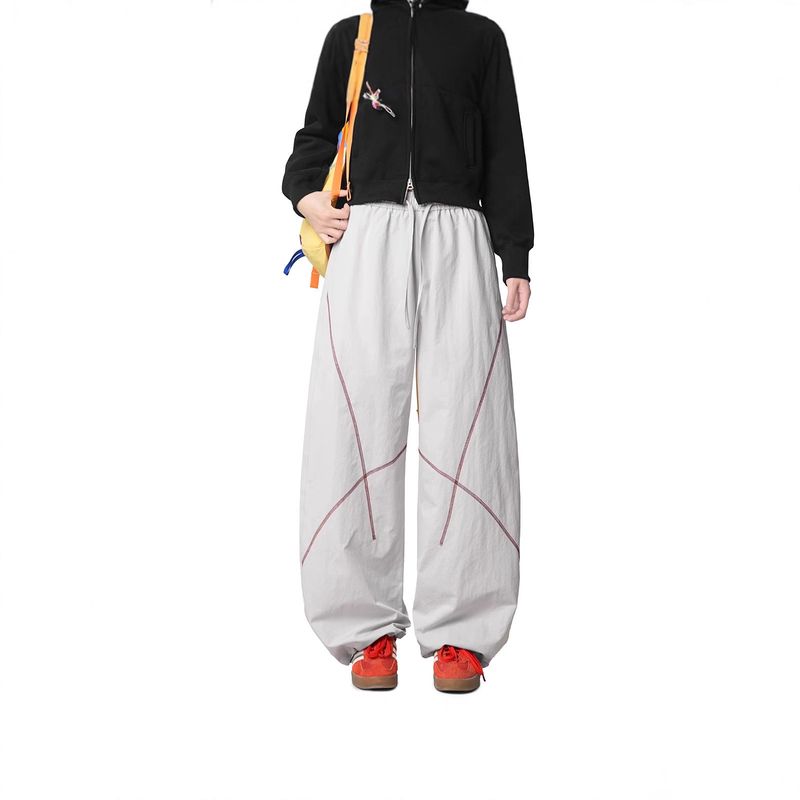 Outdoor Loose Straight Leg Sports Pants Pure Color Suture Casual Design Couple Style Long Trousers Autumn 2025 Polyester Fiber