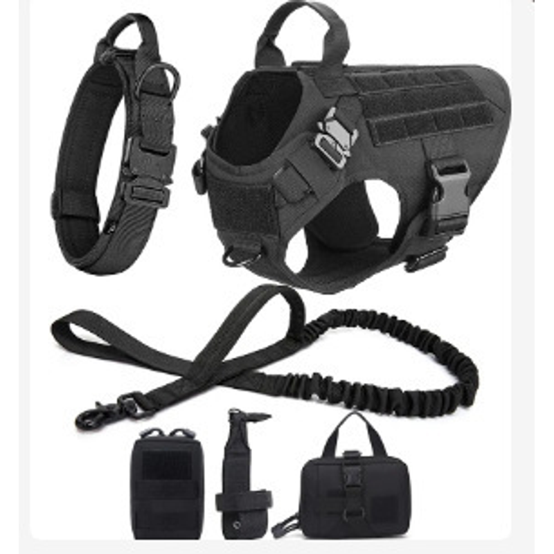 Outdoor Multifunctional Water Bottle Pouch Vest Dog Clothes Suit Black Four Piece Set S