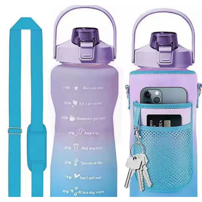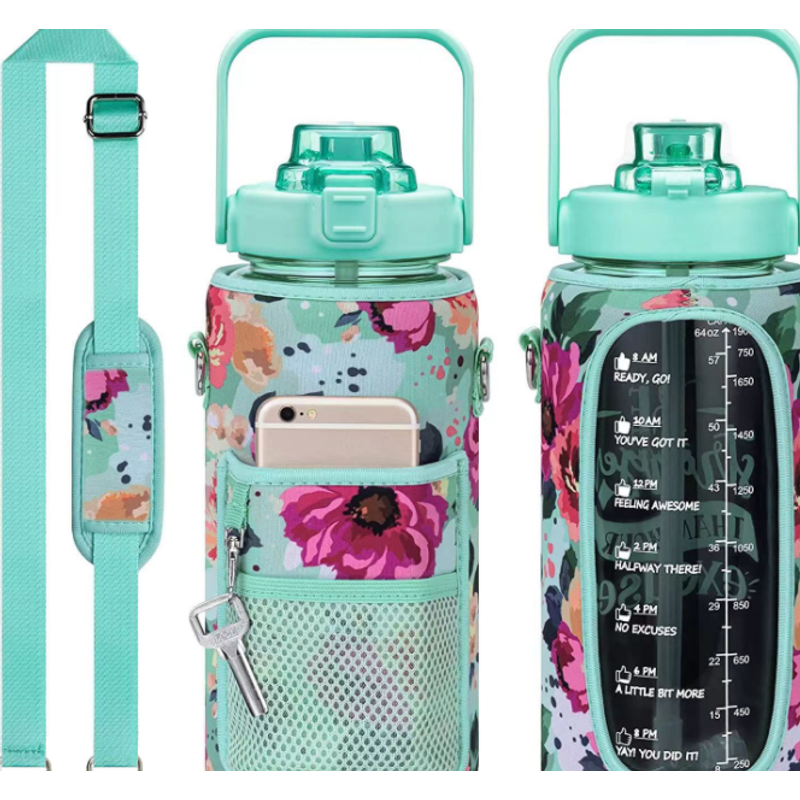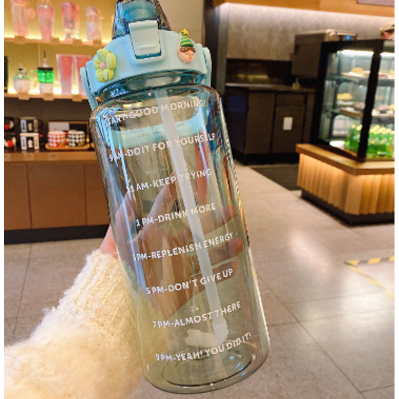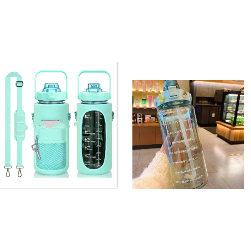 Outdoor Portable Travel With Scale Transparent Water Bottle Cup Set Green Set 2000ML