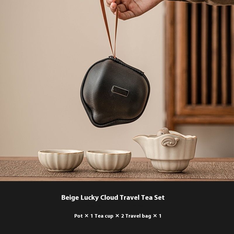 Color: beige Ru ware Xiangyun travel tea set, beige Ru ware Xiangyun travel tea set [with stainless steel screen filter]]