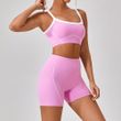 Outdoor Sports Yoga Suits Women's Spaghetti Strap Contrast Color Fitness Set Outfits Water Blue Short M
