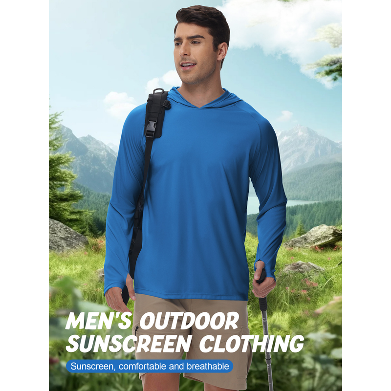Outdoor UV-proof Fishing Long Sleeve Hooded Thin Top Protection Navy Blue S