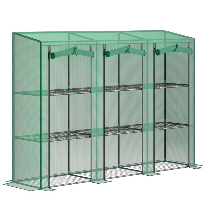 This Outsunny three-tier plastic greenhouse provides plenty of space for plants, flowers and more. The PE cover protects plants inside from wind and rain, whilst allowing plenty of sunlight to pass through. Plus, the roll-up zipped doors allows easy access and provides fresh air inside whenever.