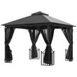 Outsunny 3 x 3(m) Garden Gazebo Patio Party Tent Shelter Outdoor Canopy Double Tier Sun Shade Metal Frame Netting, Beige