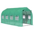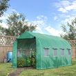 A spacious garden polytunnel greenhouse from Outsunny helps you create your very own indoor garden. Made from durable steel frame with PE cloth, our greenhouse tent protects your plants, fruits and vegetables from cold. This poly tunnels with door is created to provide desired temperature, humidity and sunlight to your plants. Roll up windows and zip door allow ease of access and optimum protection from birds. • A Spacious walk-in poly tunnel greenhouse helps to create your very own indoor garden • Includes 4 ropes and 4 ground stakes for added stability • PE cloth cover ensure all your plants are protected from light wind and light rain transparent cover for efficient solar performance • Galvanised steel frame is rust resistant for stability and durability • Roll-up zipped doors for easy access and roll up windows for ideal ventilation Note: Please put away the cover in case of heavy snow, strong wind and heavy rain. • Material Used: PE cloth, Galvanised steel • Colour: Green PE, Silver Frame • Product Dimension: 3.95L x 1.95W x 2Hm • Door Size: 95W x 170Hcm • Window Size: 35L x 35Wcm • Assembly Required: YES • Custom Label: 845-147 • NOTE: Not suitable for bad weather conditions