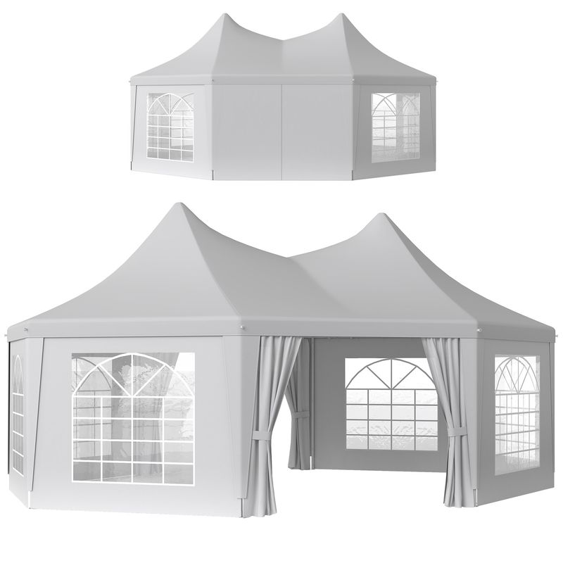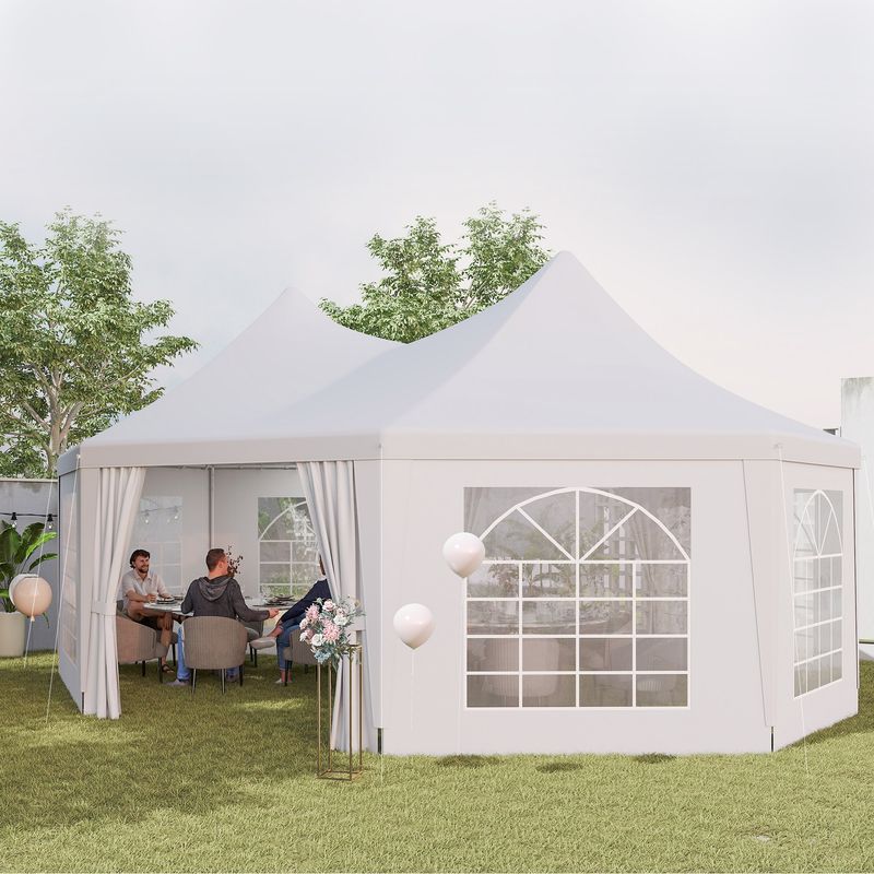 Outsunny 6.8 x 5m Octagonal Marquee Gazebo, Heavy Duty Wedding Party Tent with Sides and Doors, White