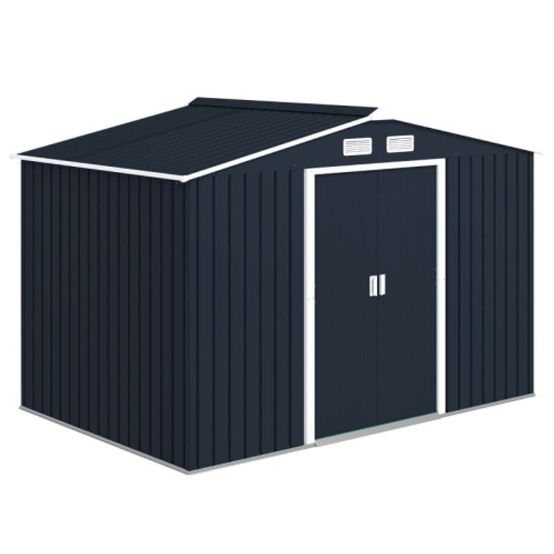 Product Name:Outsunny 9 x 6ft Metal Bicycle Shed, Outdoor Storage Tool House with Ventilation Slots, Foundation Kit and Lockable Double Doors, Dark Grey