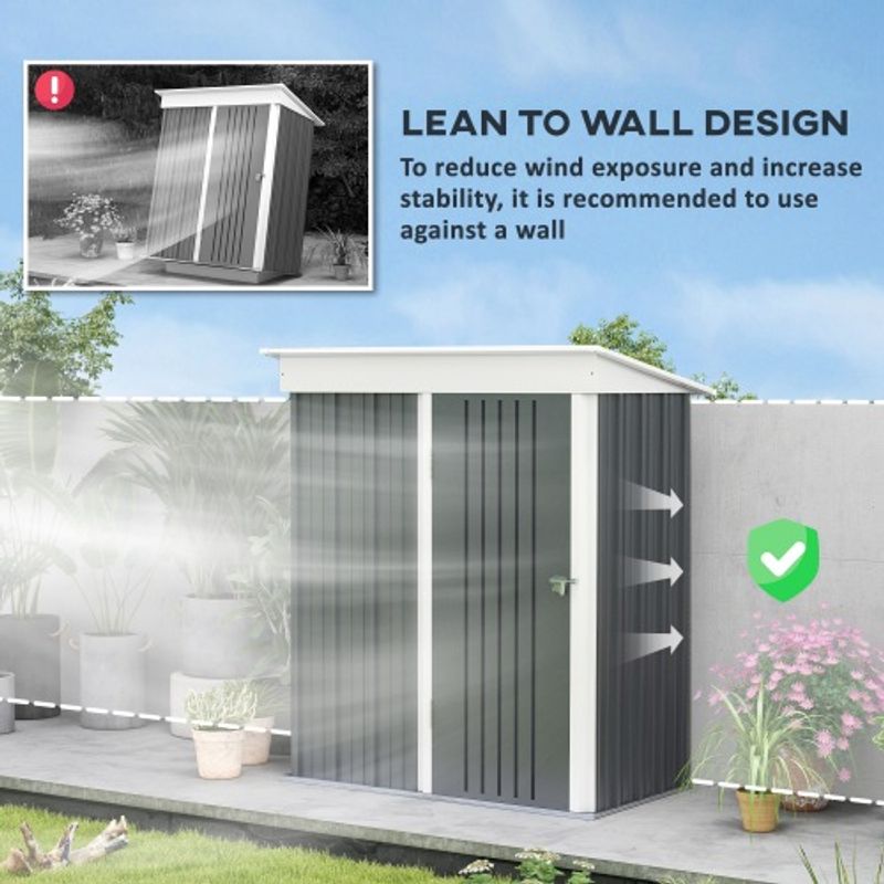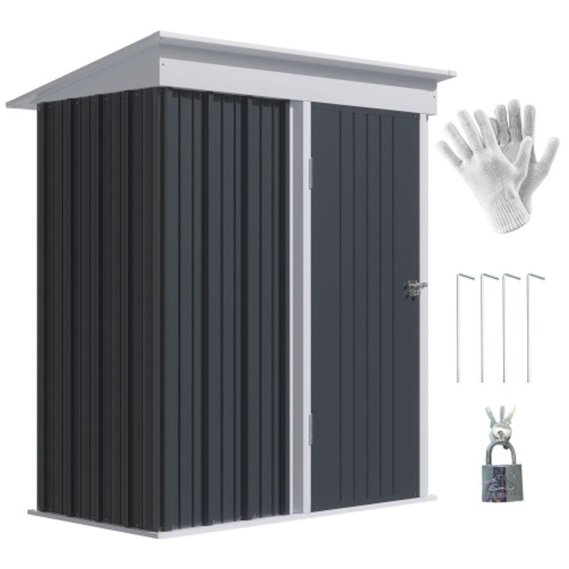 Product Name:Outsunny Metal Garden Shed, Outdoor Lean-to Shed for Tool Motor Bike, with Adjustable Shelf, Lock, Gloves, 5'x3'x6', Dark Grey