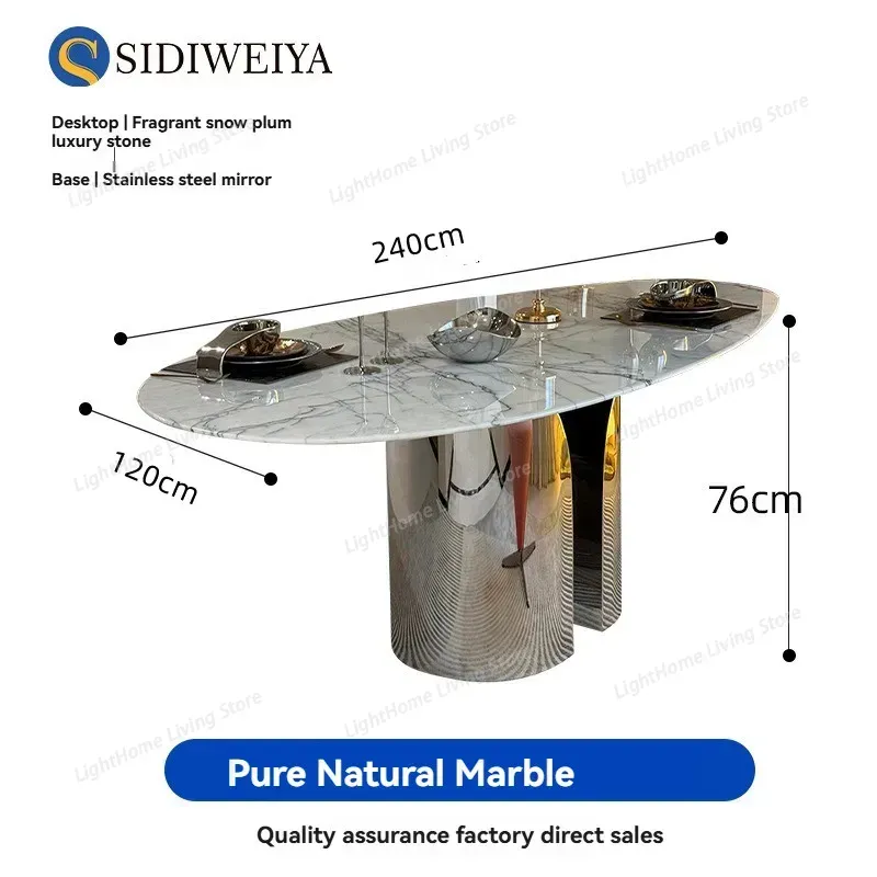 Oval Marble Dining Table With Study Stainless Steel Base Modern Dining Room Kitchen Table For Home Kitchen