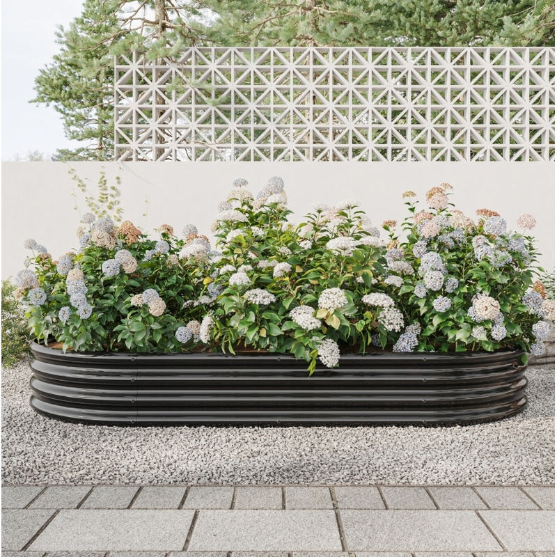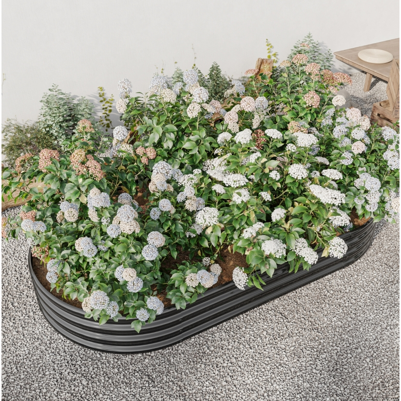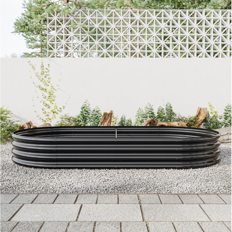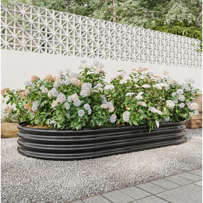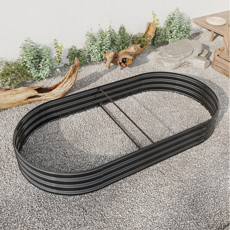 Raised Garden Bed Outdoor, Oval Large Metal Raised Planter Bed for for Plants, Vegetables, and Flowers - Black