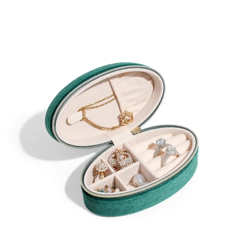 Oval Velvet Jewelry Box Vintage Mini Portable Ring Earrings Necklace Storage Display Box Travel Zipper Jewelry Packaging Box