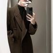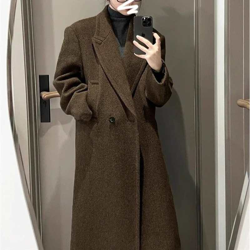 Overcoat Coat Overknee Thickened Mid-length Elegant Woolen Black 2XL
