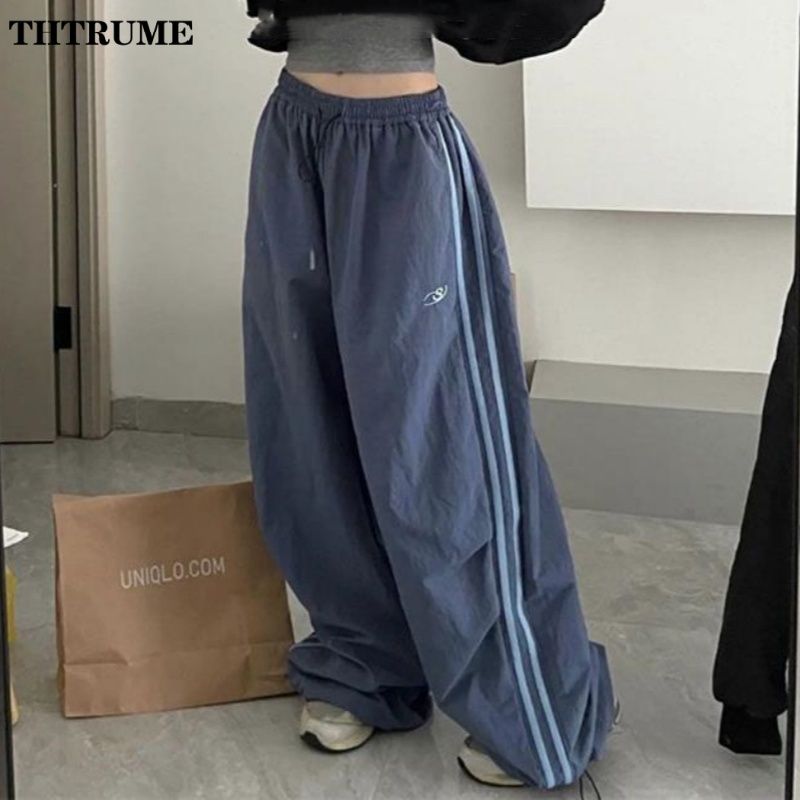 Oversized Hip Hop Baggy Pants Fashion Women Striped Pocket Elastic High Waist Cargo Pant Streetwear Sweatpant Loose New Trousers