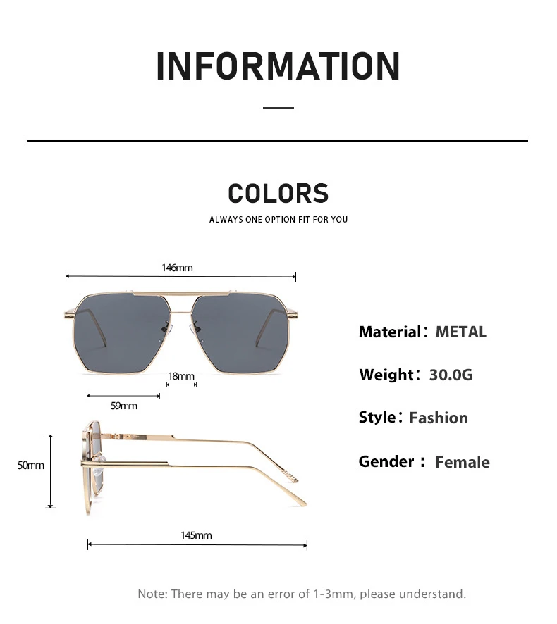 Oversized Pilot Sunglasses Women's Fashion Men's Metal Frame Glasses UV400 Square Goggles Outdoor Punk Large Frame Sunglasses