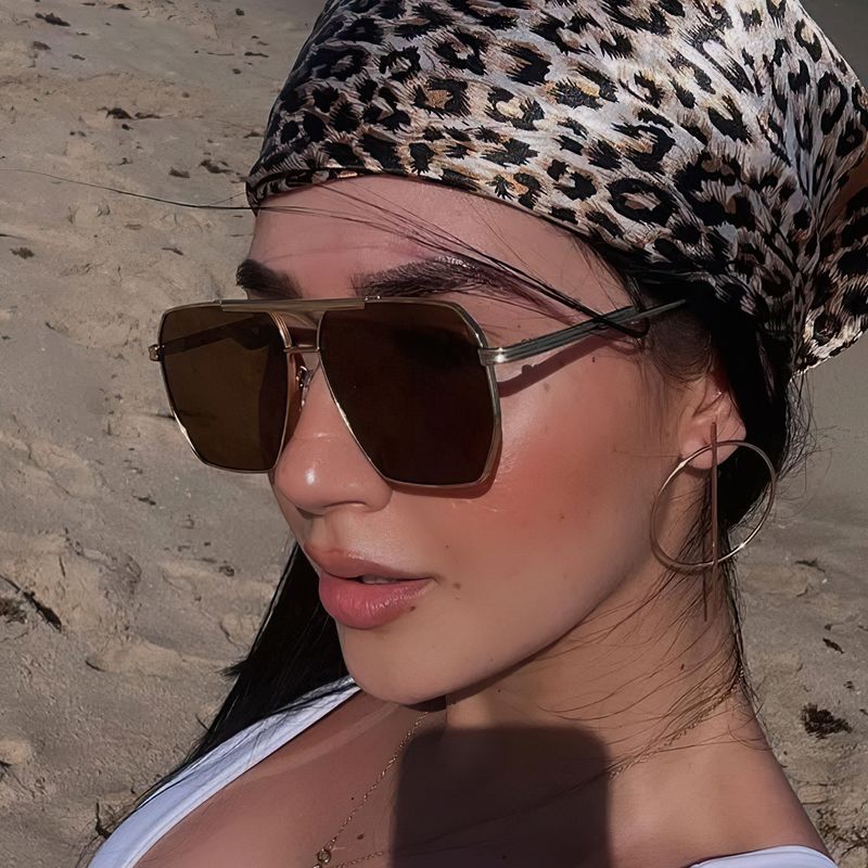 Oversized Pilot Sunglasses Women's Fashion Men's Metal Frame Glasses UV400 Square Goggles Outdoor Punk Large Frame Sunglasses