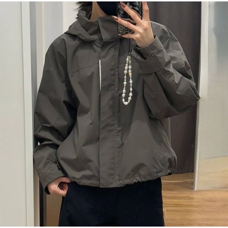 Oversized Solid Stand Collar Nylon Jacket Long Sleeve Zip Front 2026 Spring Daily Casual Women Outerwear Chic Office Lady Coat