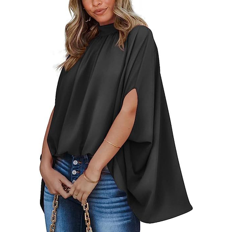 Oversized Top Batwing Sleeve Tarpaulin For Women Black M