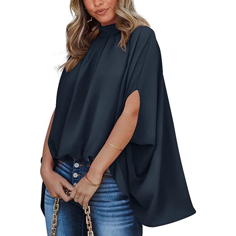 Oversized Top Batwing Sleeve Tarpaulin For Women Navy Blue M