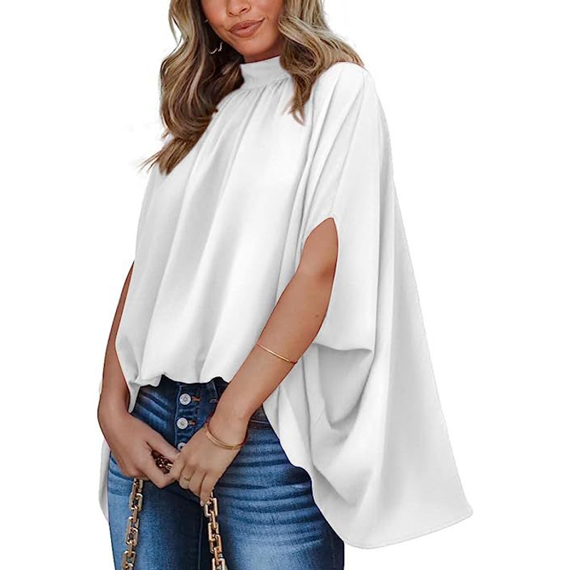 Oversized Top Batwing Sleeve Tarpaulin For Women White XL