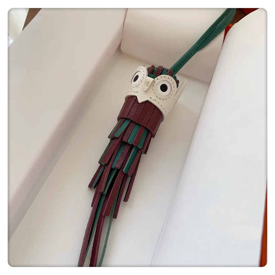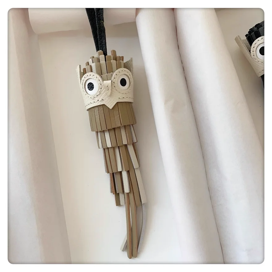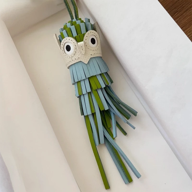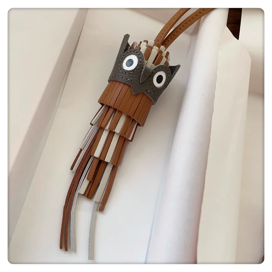 Owl Hand-sewn Tassel bag charm for women bag hanging bag pendant genuine cow leather bird doll bag accessories