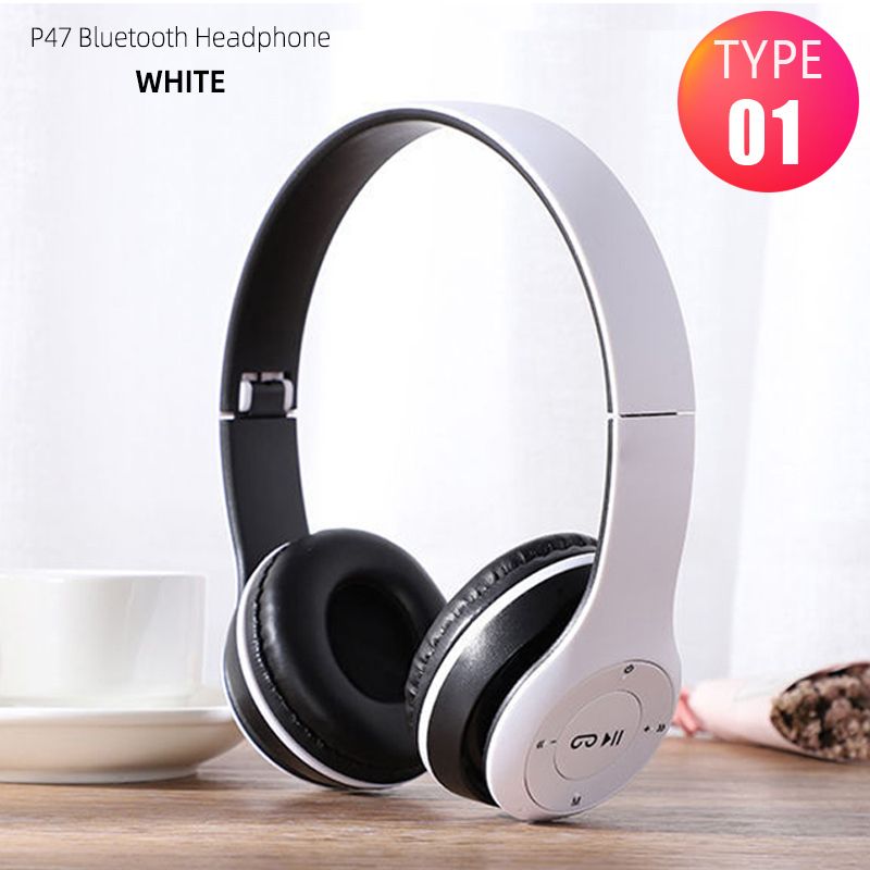 1. Features: Portable. 2. Function: Answering Phone, function, Microphone, Noise Cancelling, Song Switching, Sweatproof, Voice control, Voice Prompt, Waterproof. 3. Material: Metal, PC. 4. Model: P47. 5. Type: Over-ear. 6. Wearing type: Headband.