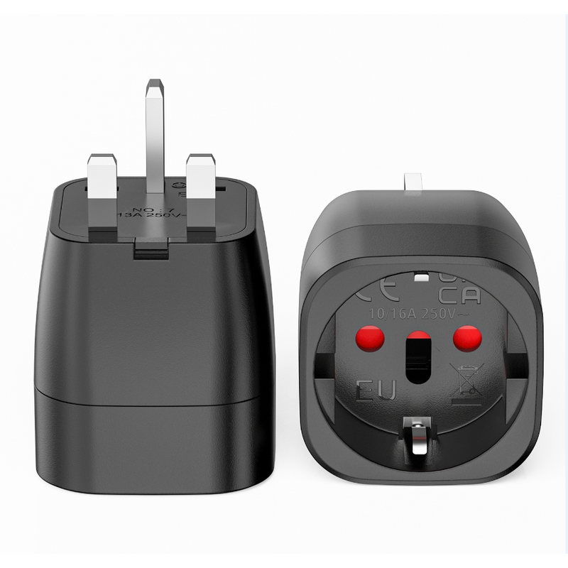 3. Multi-protect safety system: Our adapter England Germany plug is equipped with a CE, RoHS and FCC certified safety system. With surge protection, short circuit protection, temperature control, fireproof PC shell and double insulation structure, it ensures the safety of users and the devices of the users. So that children do not come into contact directly with the live part of the UK adapter and no foreign bodies can enter the socket adapter.