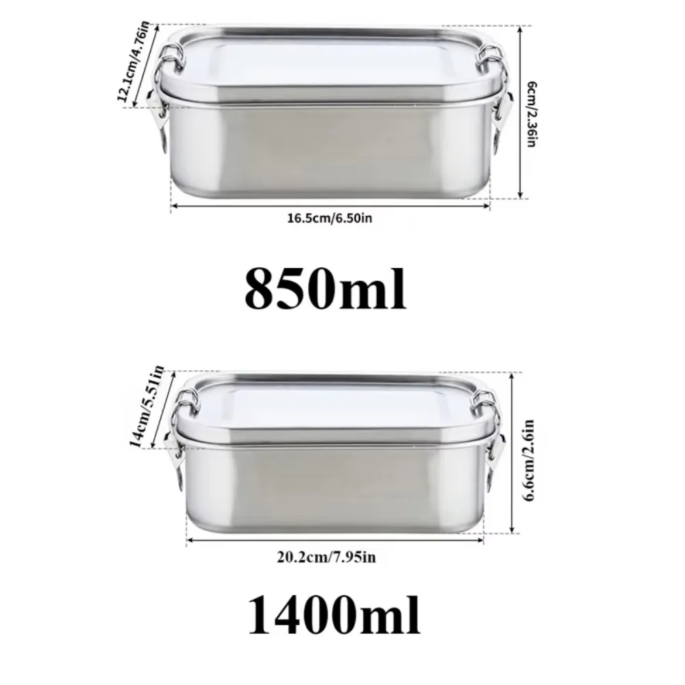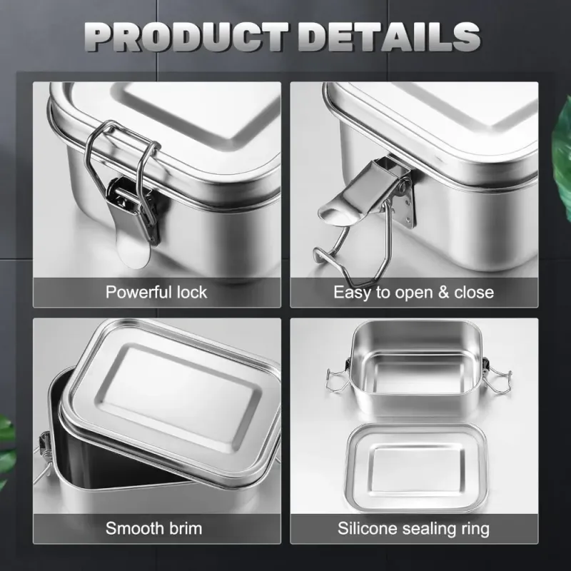 Lockable Clips for Leak Proof: the metal lunch container is designed with lockable clips that firmly secures the lid in place, avoiding leaks and spills, even when you're outside; This creates a reliable and practical food storage solution, allowing you to pack anything from saucy curries to juicy fruits without any leaks or messes