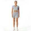 Padded V-neck Short-sleeved High-waisted Knitted Running Fitness Tracksuit Beige S