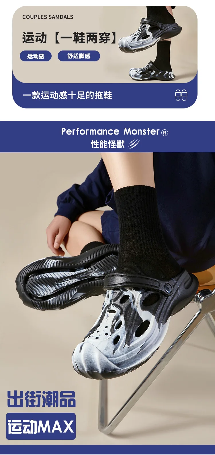 Pallene EVA Men's Hole Shoes Thick Sole Non-slip Male Slides Outdoor Lightweight Slippers Comfort Soft Sole Summer Men's Sandals